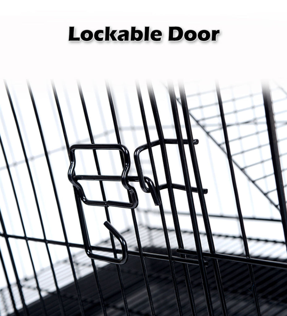 Plenty of height and width to roam and jump about. Two removable platforms and two activity ladders. And a funky hammock to top it all. Our oet Cage is indeed a home of exceptional roost for your favourite pets. Constructed with a heavy-duty metal wire frame and vein powder-coated for durability and anti-rust properties, our Pet cage is built to last with little maintenance needed. The bottom tray slides out for easy cleaning and the large access doors make feeding a breeze, while the locks help to keep your pets secured and away from prying predators. Not least, the four castor wheels enable the entire unit to be wheeled to any location hassle-free. Give your little furry friends a home that they will appreciate in their own natural instinctive way.