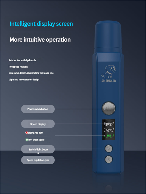 Keep your furry friend's nails trimmed and healthy with the Pedgogo 6-Speed Dog Nail Grinder. This super quiet (45db) grinder features dual LED safety lights to help you avoid the quick, preventing painful over-clipping. With 6 adjustable speeds up to 12000 RPM and 3 grinding ports, it's suitable for dogs of all sizes, from Chihuahuas to Great Danes.