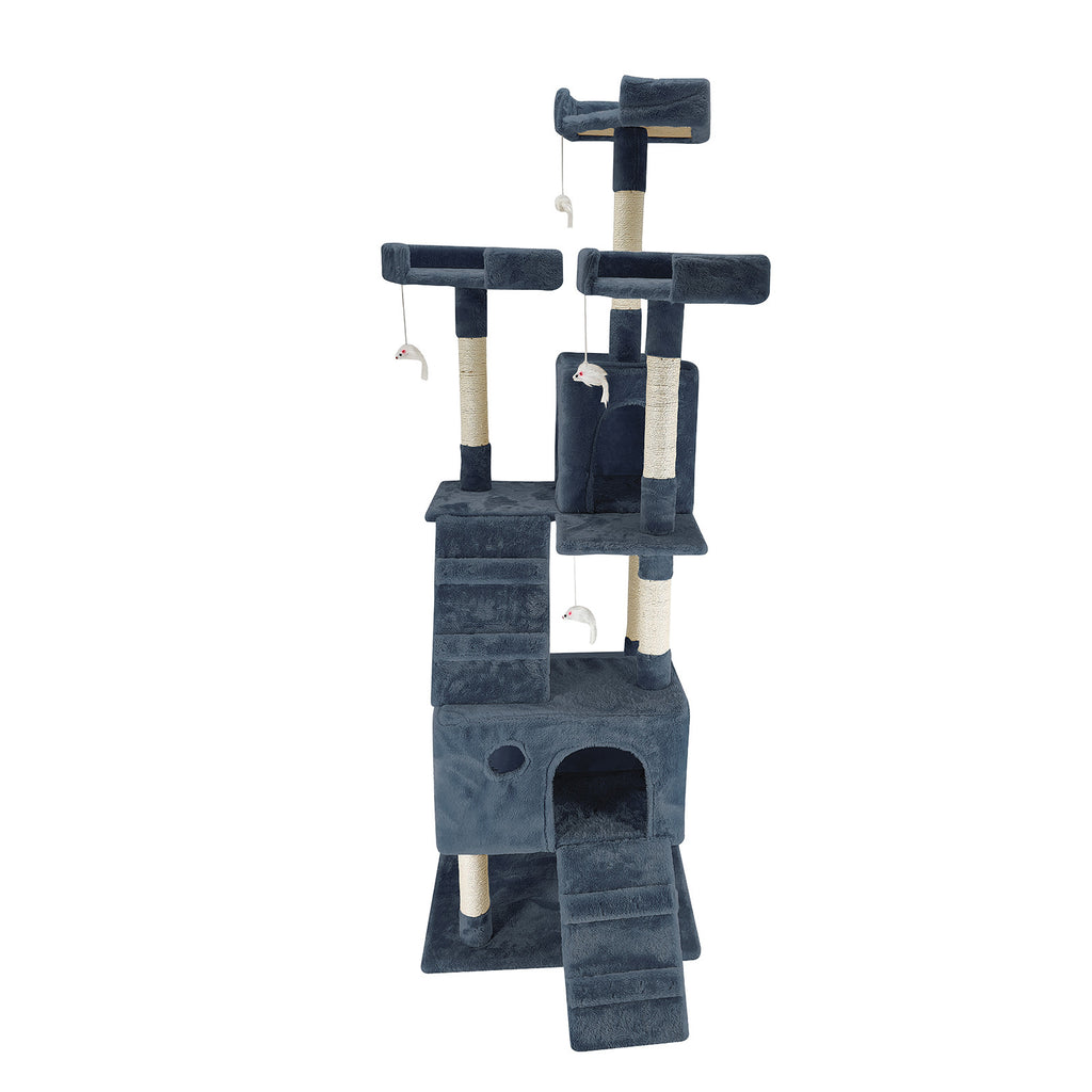 4Paws Cat Tree Scratching Post House Furniture Bed Luxury Plush Play 180cm - Grey