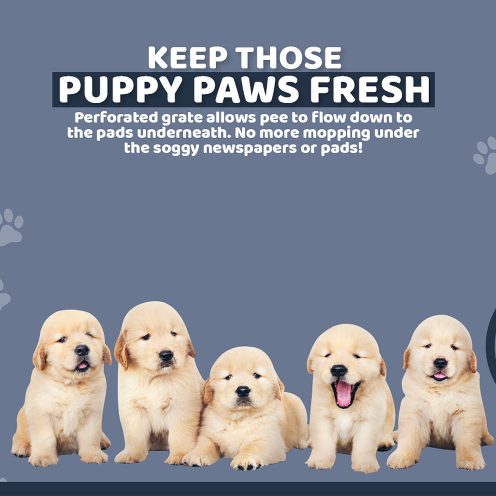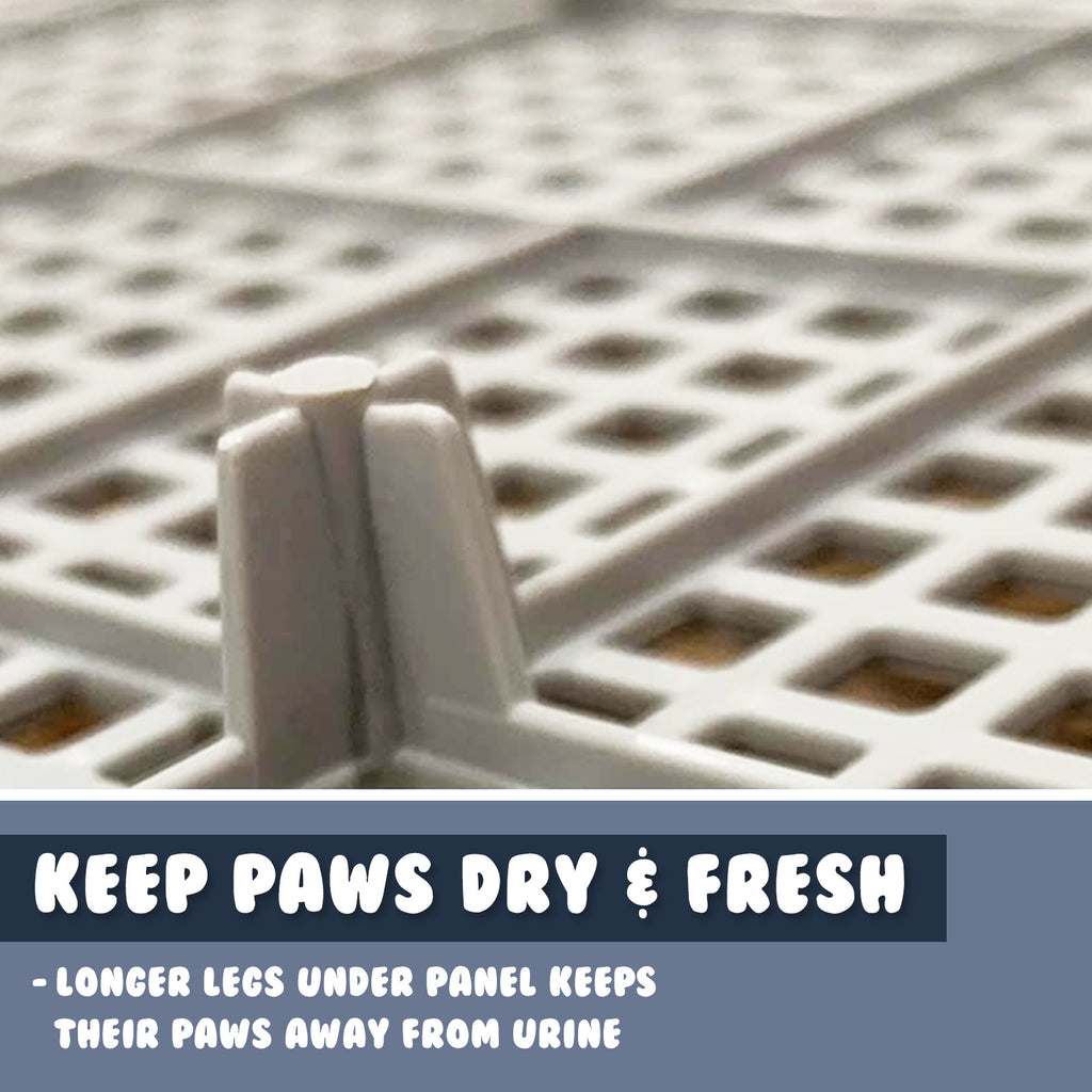 KEEP THOSE PUPPY PAWS FRESH: Perforated grate/mesh panel allows pee to flow down to your own pads underneath, and the panel legs are long to keep paws almost dry.