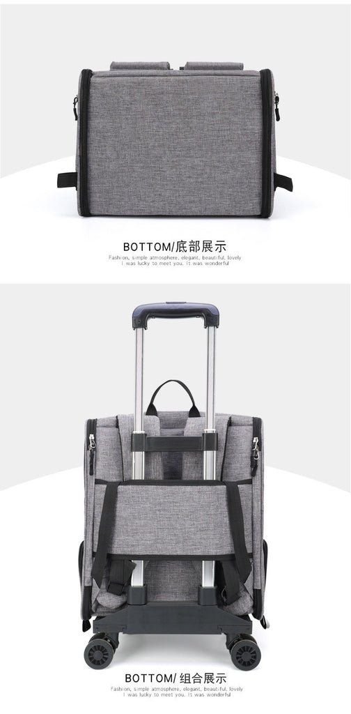 Enjoy ultimate convenience and flexibility with this 3-in-1 pet carrier! It functions as a rolling carrier, a backpack, and can even be collapsed for easy storage. Perfect for cats and small dogs, this carrier offers a comfortable and versatile travel solution for all your adventures.
