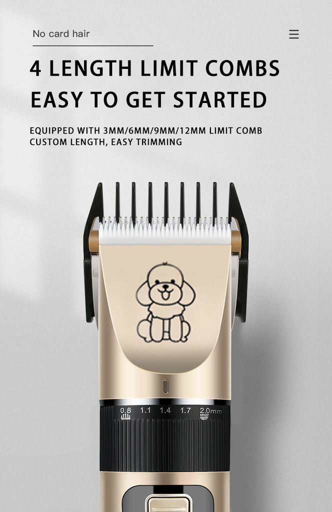 • Complete Grooming Kit: Includes the pet hair clipper, 4 x limit combs, cleaning brush, lubricating oil, and charging cable (charger not typically included, uses standard USB).