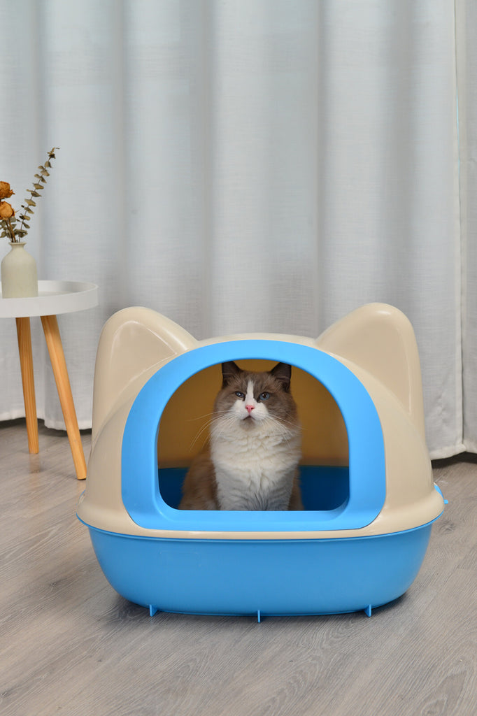 Large Hooded Cat Toilet Litter Box Tray House With Scoop Blue