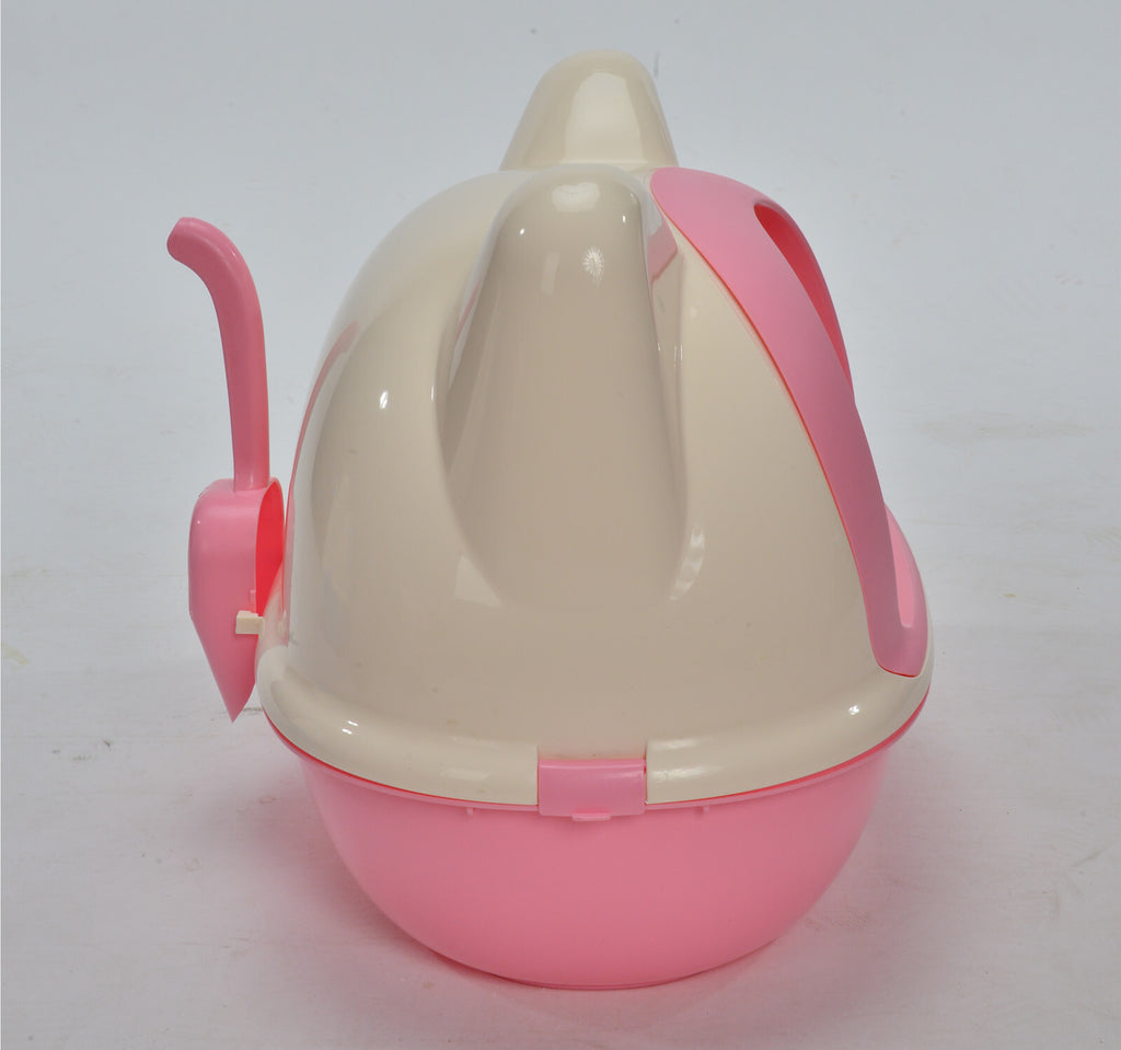 Large Hooded Cat Toilet Litter Box Tray House With Scoop Pink